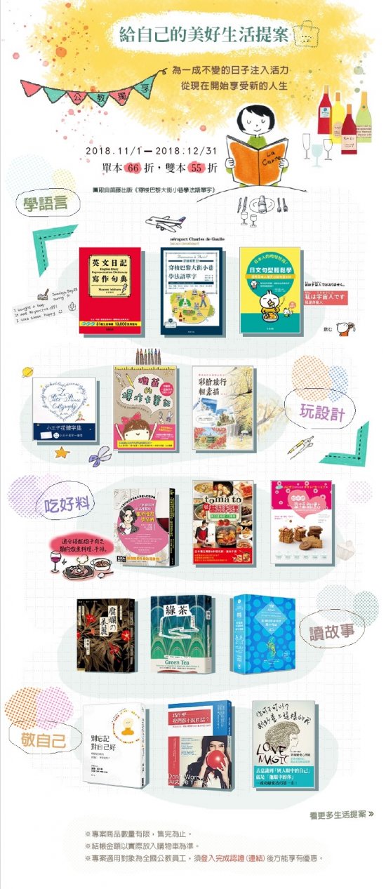 轉知有關全國公教員工網路購書優惠方案107年11月專屬活動訊息,請同仁參考利用