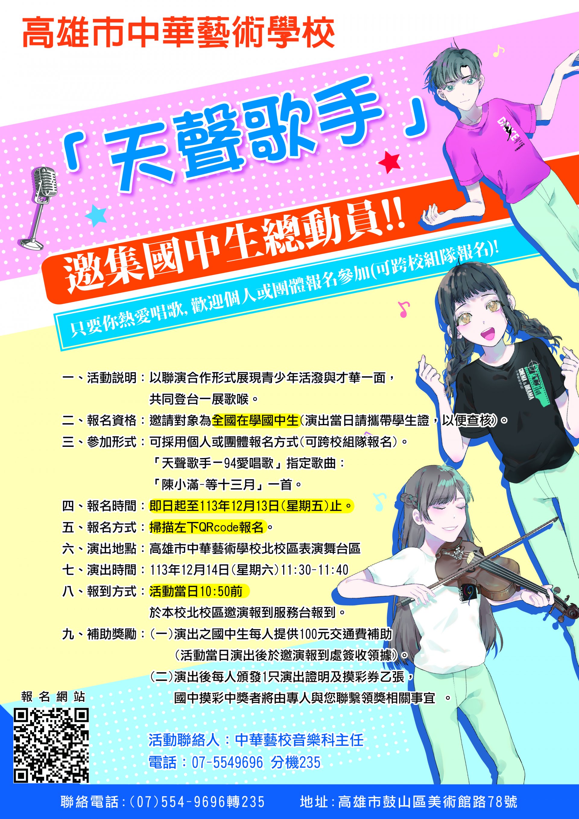 四、本案聯絡人:中華藝校音樂科(電話:07-5549696分機235)。