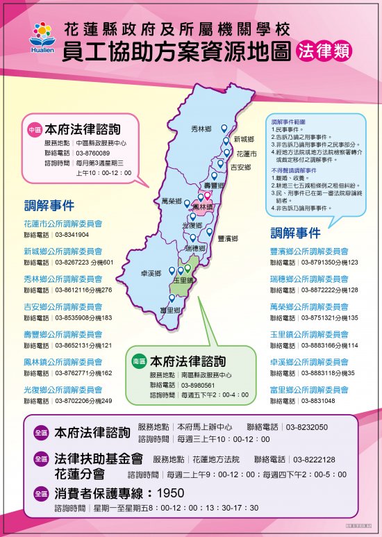 轉知花蓮縣政府員工協助方案資源地圖4張及資源一覽表1份